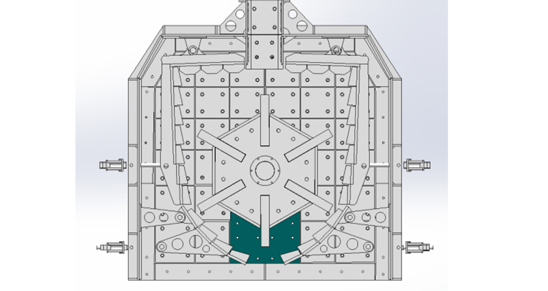FSX系列制砂機是帶有板錘的轉(zhuǎn)子在電機的帶動下高速的做圓周運動,當(dāng)物料進入破碎腔后,受到高速旋轉(zhuǎn)板錘的沖擊,物料高速射向反擊板的撞擊,以及高速物料之間撞擊,還有反擊板的摩擦剪切力才破碎完成,符合要求的料直接從下端排除,可以通過調(diào)節(jié)反擊板掛架與板錘之間的間隙來控制出料的粒度。