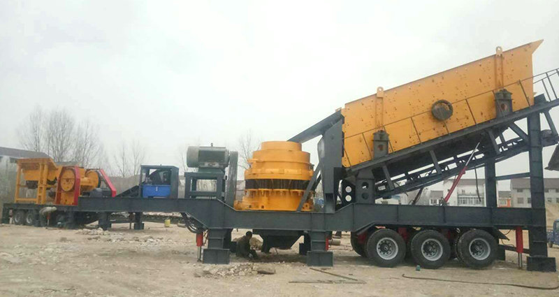 移動式破碎站主破碎設(shè)備為破碎機(jī),物料經(jīng)給料機(jī)均勻輸送到破碎機(jī)內(nèi),被破碎機(jī)初步破碎以后由圓振動篩構(gòu)成閉路系統(tǒng),實(shí)現(xiàn)物料的循環(huán)破碎,符合粒度要求的物料由輸送機(jī)輸出,從而達(dá)到生產(chǎn)目的。移動式破碎站還可以根據(jù)實(shí)際生產(chǎn)需要去除圓振動篩,而直接對物料進(jìn)行初步破碎,然后配合其他破碎設(shè)備進(jìn)行具體的操作,方便、靈活。