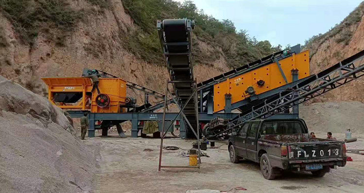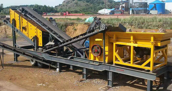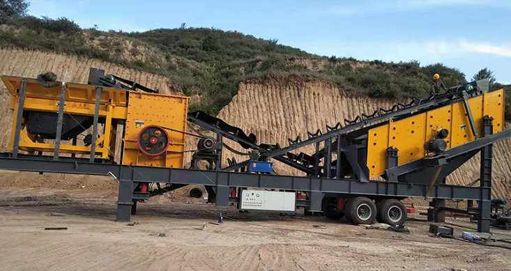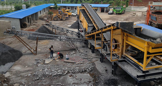 移動式破碎站主破碎設備為破碎機,物料經給料機均勻輸送到破碎機內,被破碎機初步破碎以后由圓振動篩構成閉路系統,實現物料的循環破碎,符合粒度要求的物料由輸送機輸出,從而達到生產目的。移動式破碎站還可以根據實際生產需要去除圓振動篩,而直接對物料進行初步破碎,然后配合其他破碎設備進行具體的操作,方便、靈活。